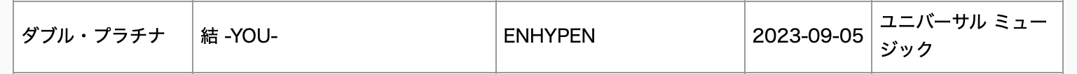 与此同时,ENHYPEN 的新日本单曲《YOU》获得双白金销量认证,销量超过 50 万张,成为他们第二张在该国达到这一里程碑的日本专辑。