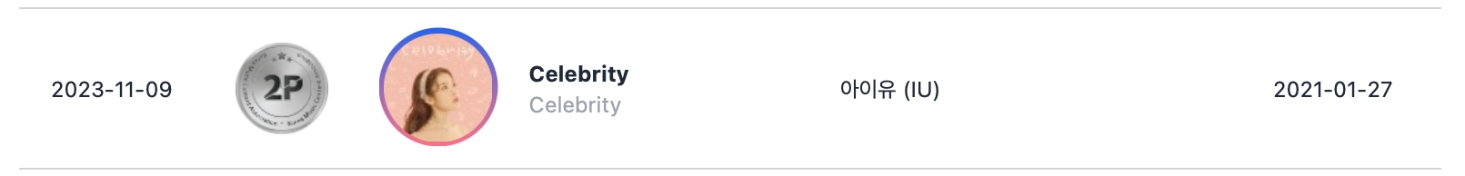 在流媒体类别中,IU 2020 年热门歌曲《Celebrity》在超过 2 亿次流媒体播放后获得双白金认证。