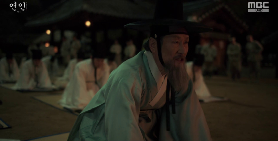 张贤几乎没有意识,他们在另一名太监的帮助下,帮助将张贤带到吉彩的住处。但到了早上,宫里也拷打了那个太监,以透露“阳春”的去向。太监勇敢地坚持下去,引导士兵前往吉彩的住处,但否认吉彩参与其中。这使得 Ryang Eum 可以将 Jang Hyun 送到部长 Kim Ja Jeom(Kim Min Sang 饰)的家,他厌倦了国王的胡言乱语。但是,当你的国家也被另一位腐败、残酷的君主入侵时,如何与腐败、残酷的国王作战呢?