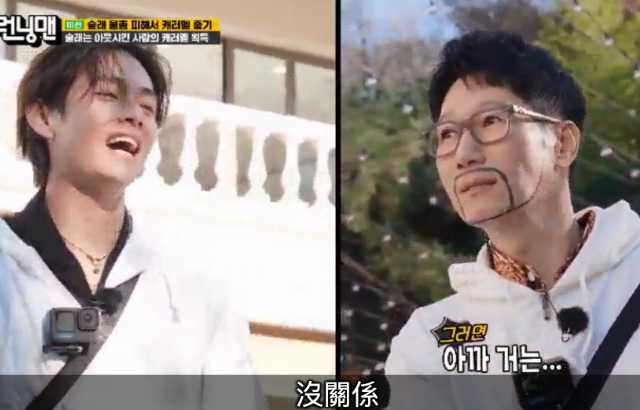 没想到综艺感上身的V,作势扶着脸颊表示真的很疼的模样,让池锡辰更加焦急地说「泰亨,你快亲口说没事」、「说你不痛」,健壮的成员们也忍不住跟着起哄「昭旻才刚离开,锡辰哥就要接着离开吗?」场面一度无法收拾。不过依旧耿耿于怀的池锡辰,再度向V确认「刚刚那个失礼的行为…」V也透过点透确认没事。