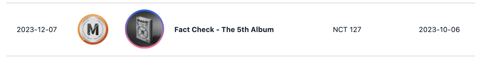 IVE的新迷你专辑《I’VE MINE》和NCT 127的最新专辑《Fact Check》均获得百万张认证,销量均超过100万张。