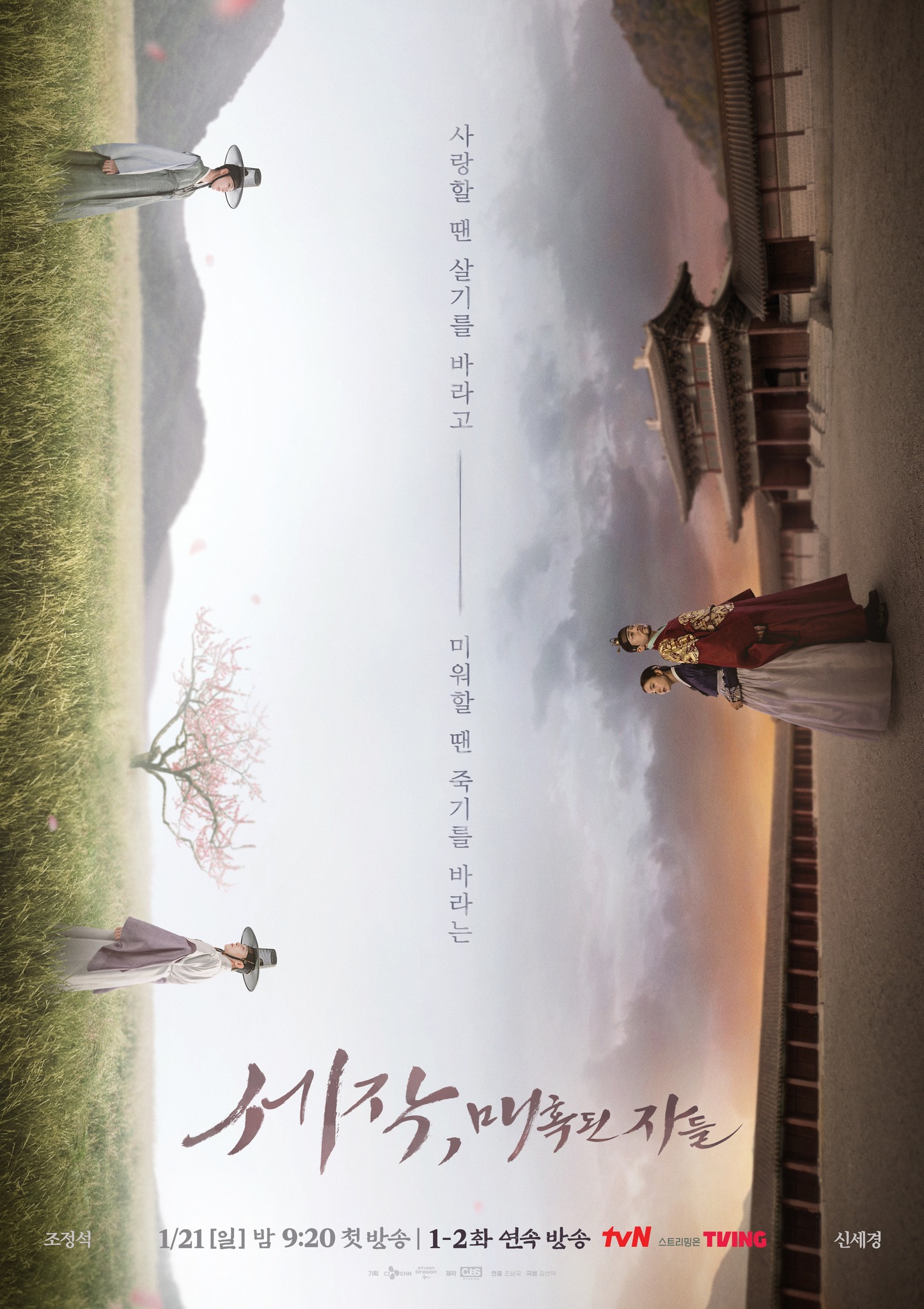 海报中,赵正淑和申世京在风景如画的田野中对视,樱花花瓣在他们周围优雅地舞动,他们分别扮演易仁王子和女扮男装的姜梦宇。两人最初在隐瞒真实身份的情况下相识,后来通过围棋游戏建立了密切的联系。海报凸显了两个角色之间的情感距离,描绘了两人无奈掩饰感情的处境。