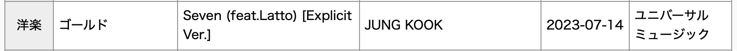 与此同时,BTS 柾国的官方个人首张单曲《Seven》(与 Latto 合作)的露骨版本在日本突破 5000 万大关后也获得了金唱片认证。