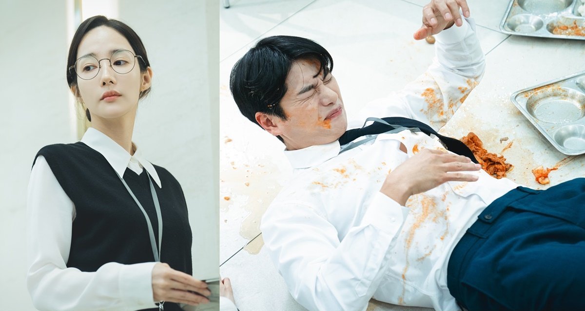 最新公开的剧照显示,朴敏焕倒在地上,身上覆盖着配菜。郑秀敏也跪在地上试图帮助朴敏焕,站在他们上方的是姜智媛,整个食堂都看向他们的方向。