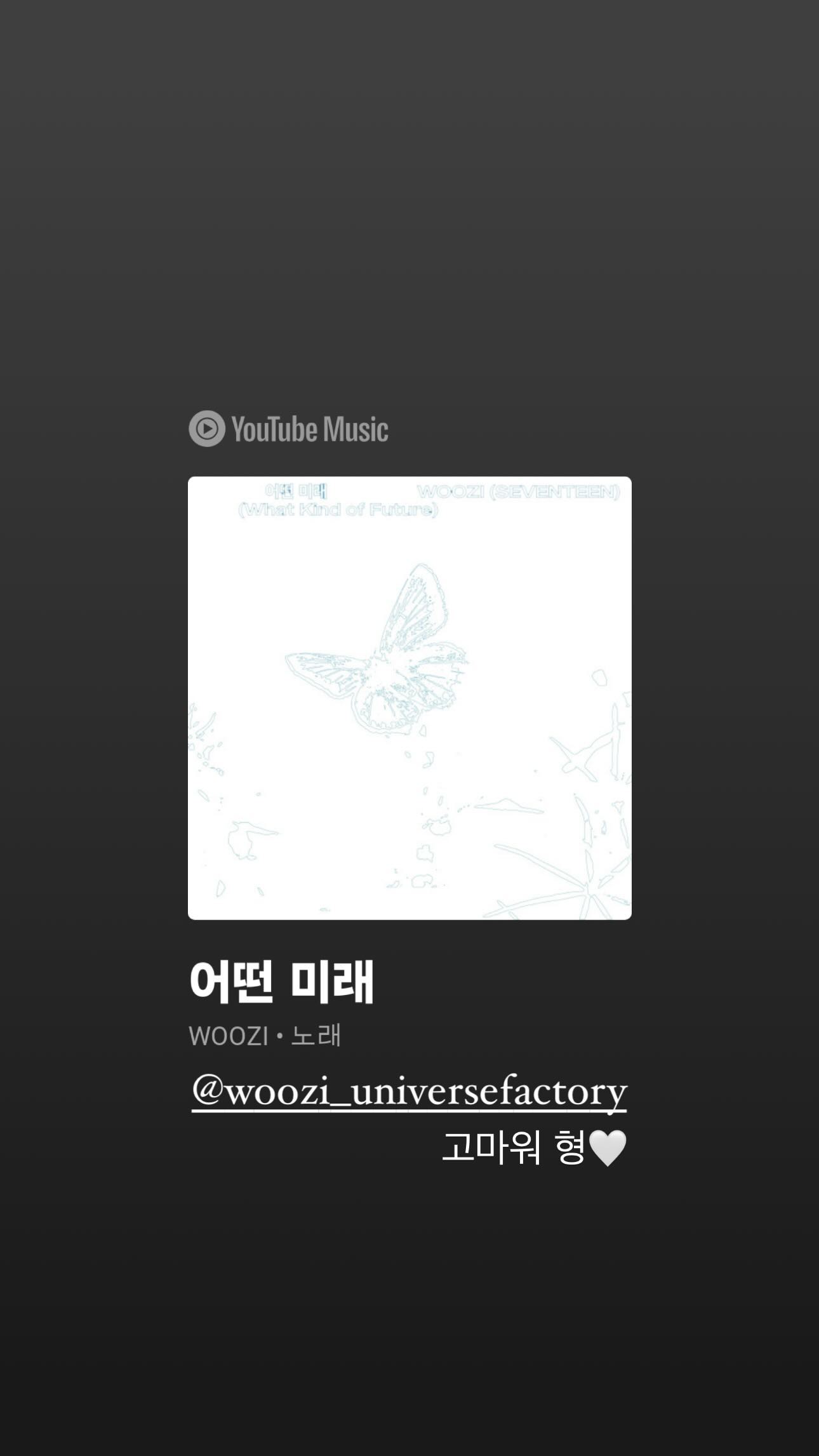 Weki Meki的Rina同样为Moonbin上传了Woozi的“What kind of future”照片。