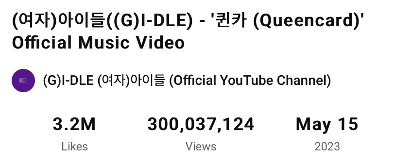 (G)I-DLE 本周在 YouTube 上第二次突破 3 亿次大关!