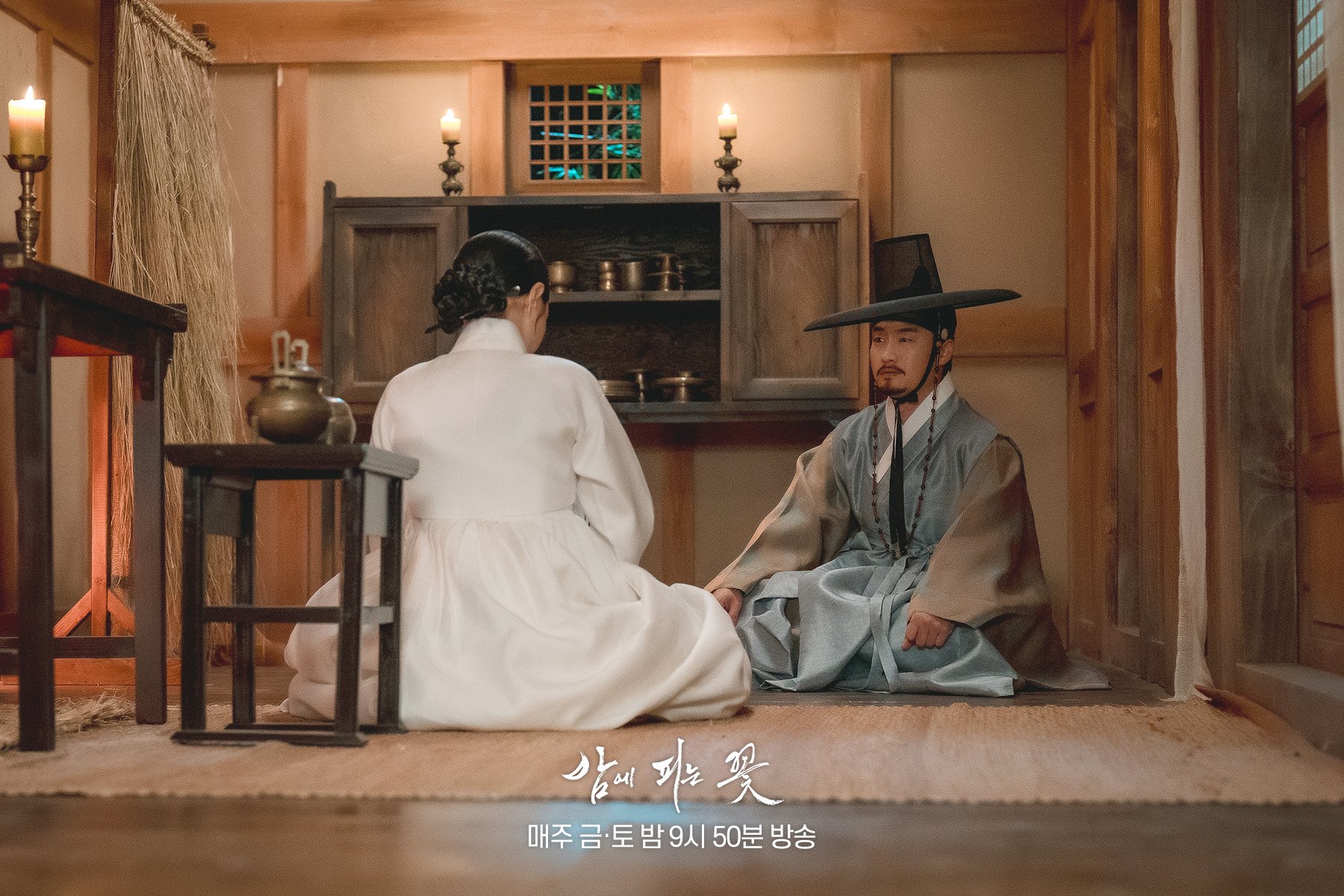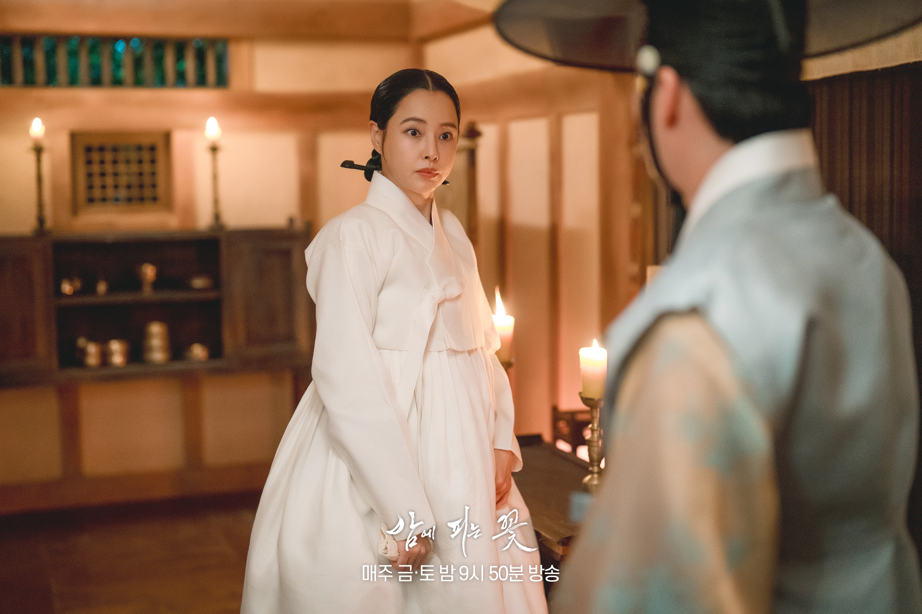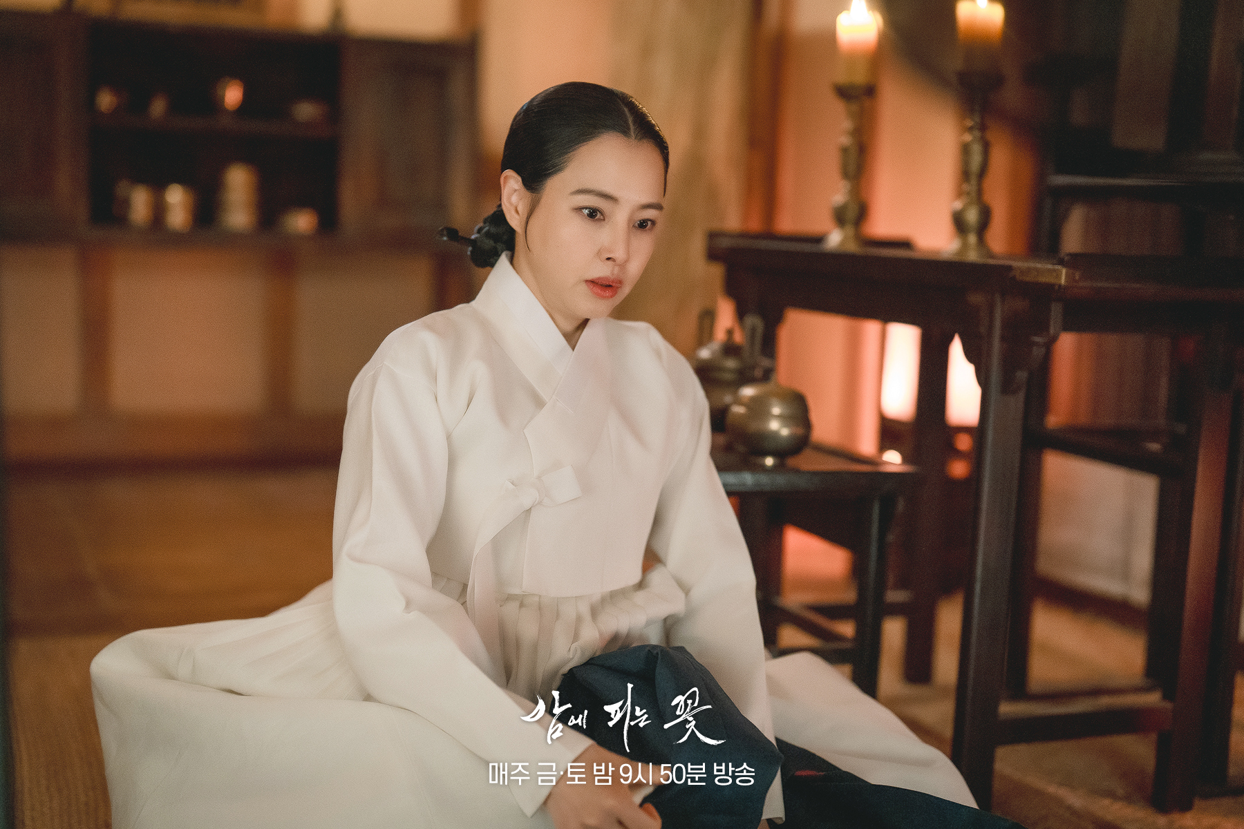 新发布的剧照捕捉到了杨花和丈夫石正(吴义植饰)之间令人震惊的邂逅。杨华 (Yeo Hwa) 仍在乔装打扮,从事“夜间工作”,她注意到有人在追赶她。她跑到神社,迅速换上白衣,假装正在擦拭牌位上的灰尘。