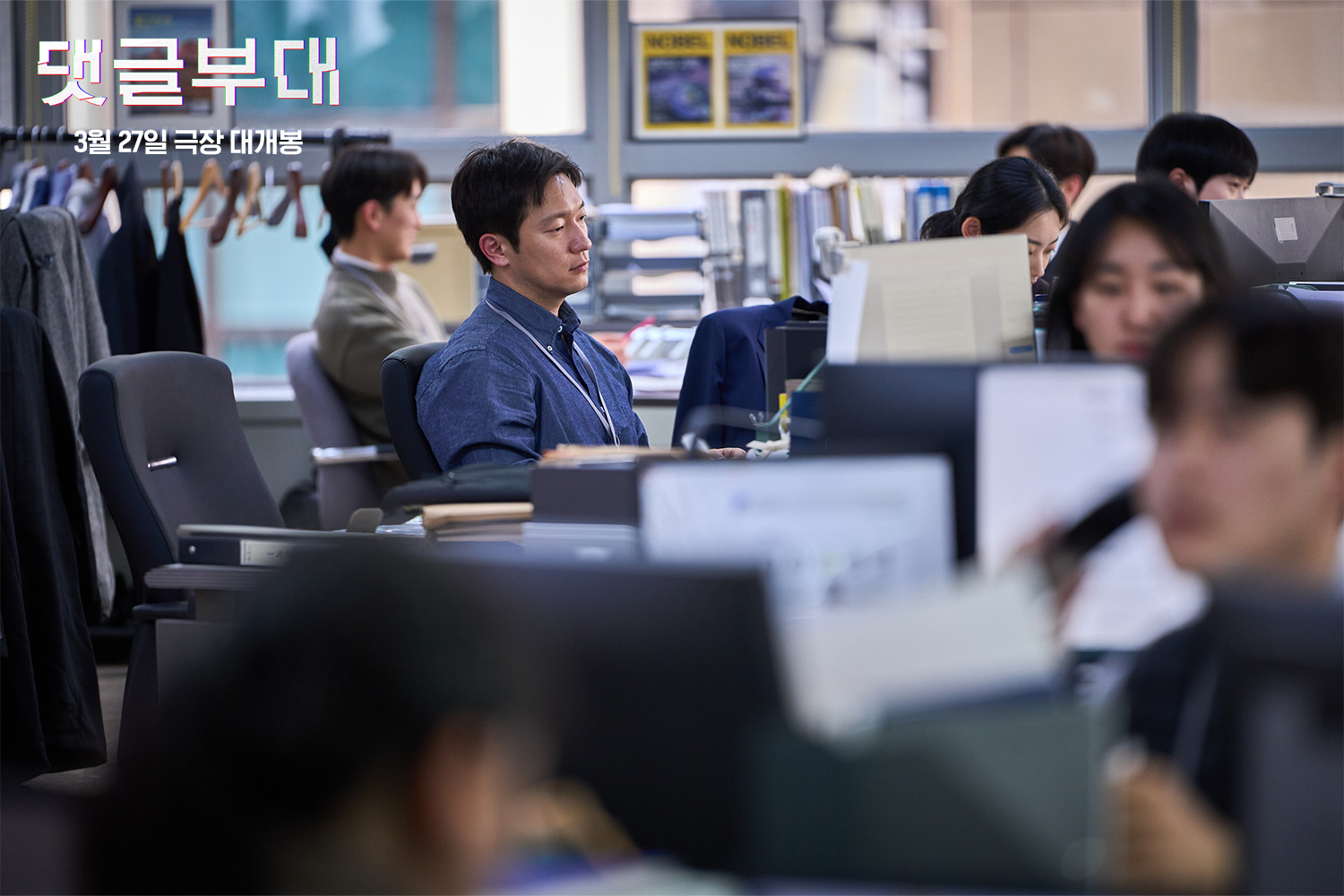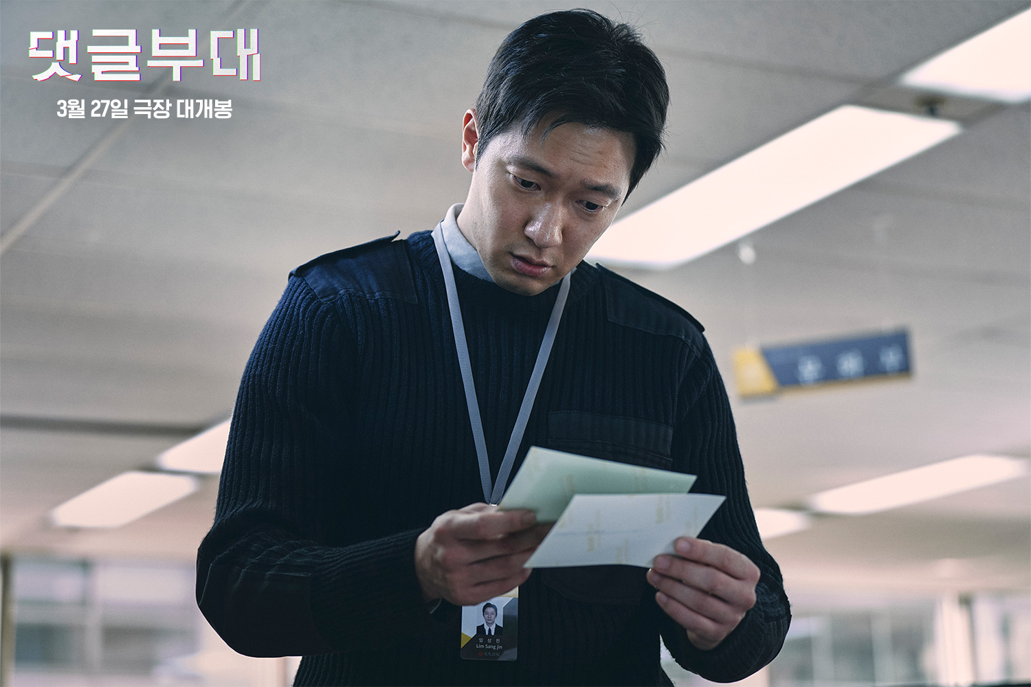 新发布的剧照捕捉到了林尚镇三种不同的面部表情:检查某件事后的震惊表情,坐在新闻编辑室时的悲伤表情,然后是在堆满文件的桌子前明显疲惫的表情和一台笔记本电脑。