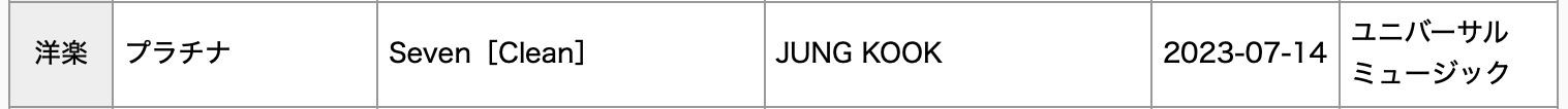 柾国还凭借其官方个人首张单曲《Seven》的纯净版获得了白金销量,该单曲目前在日本的播放量已突破 1 亿次。