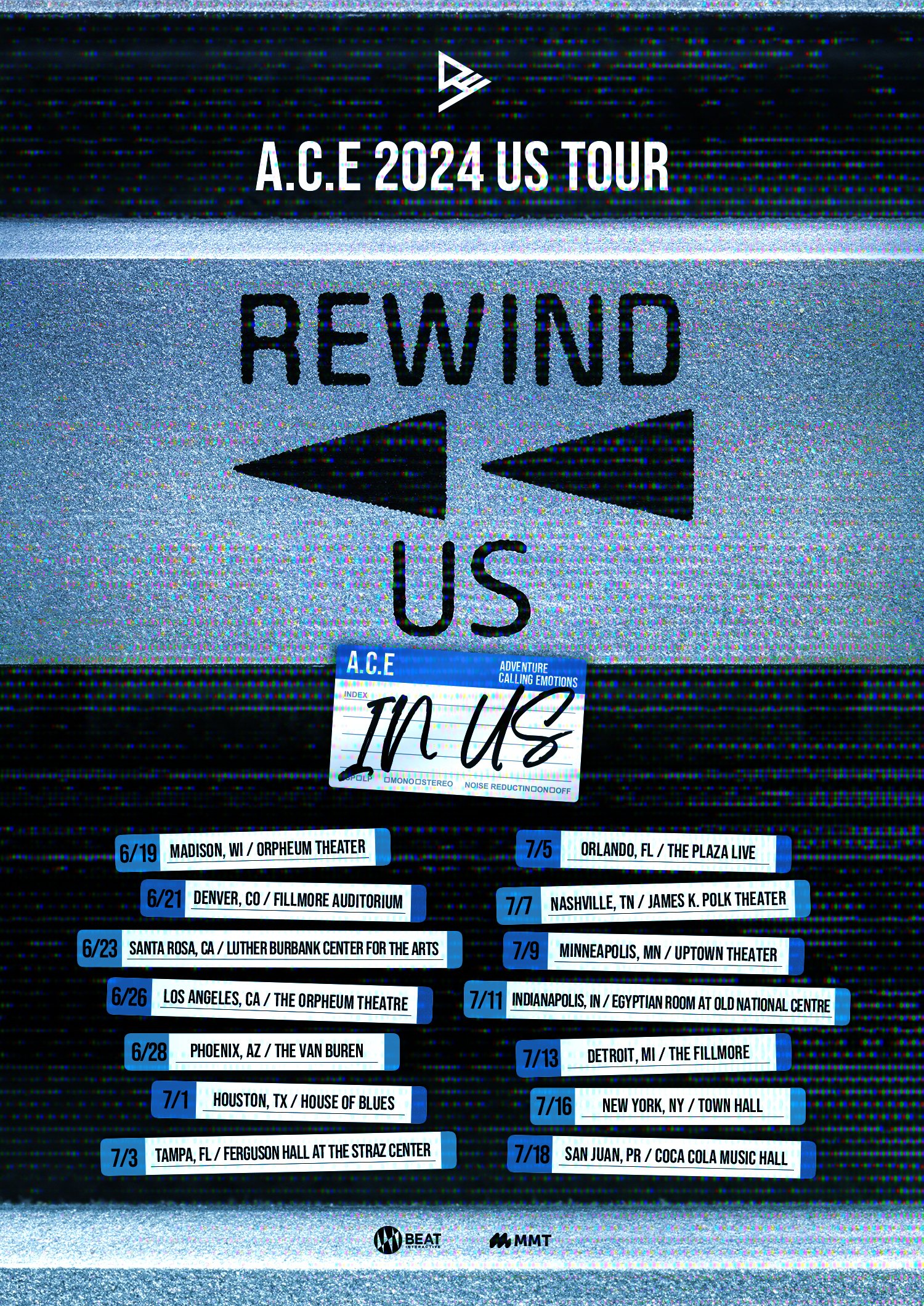 韩国时间 3 月 15 日午夜,A.C.E 正式宣布了 2024 年美国巡演“REWIND_US”的计划。