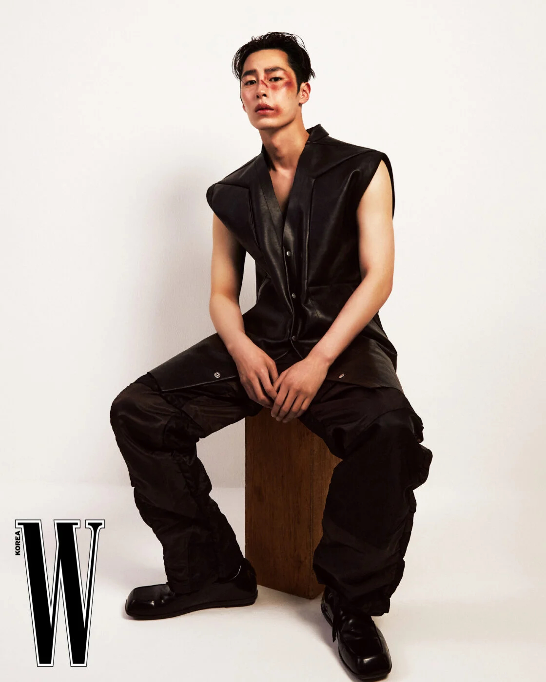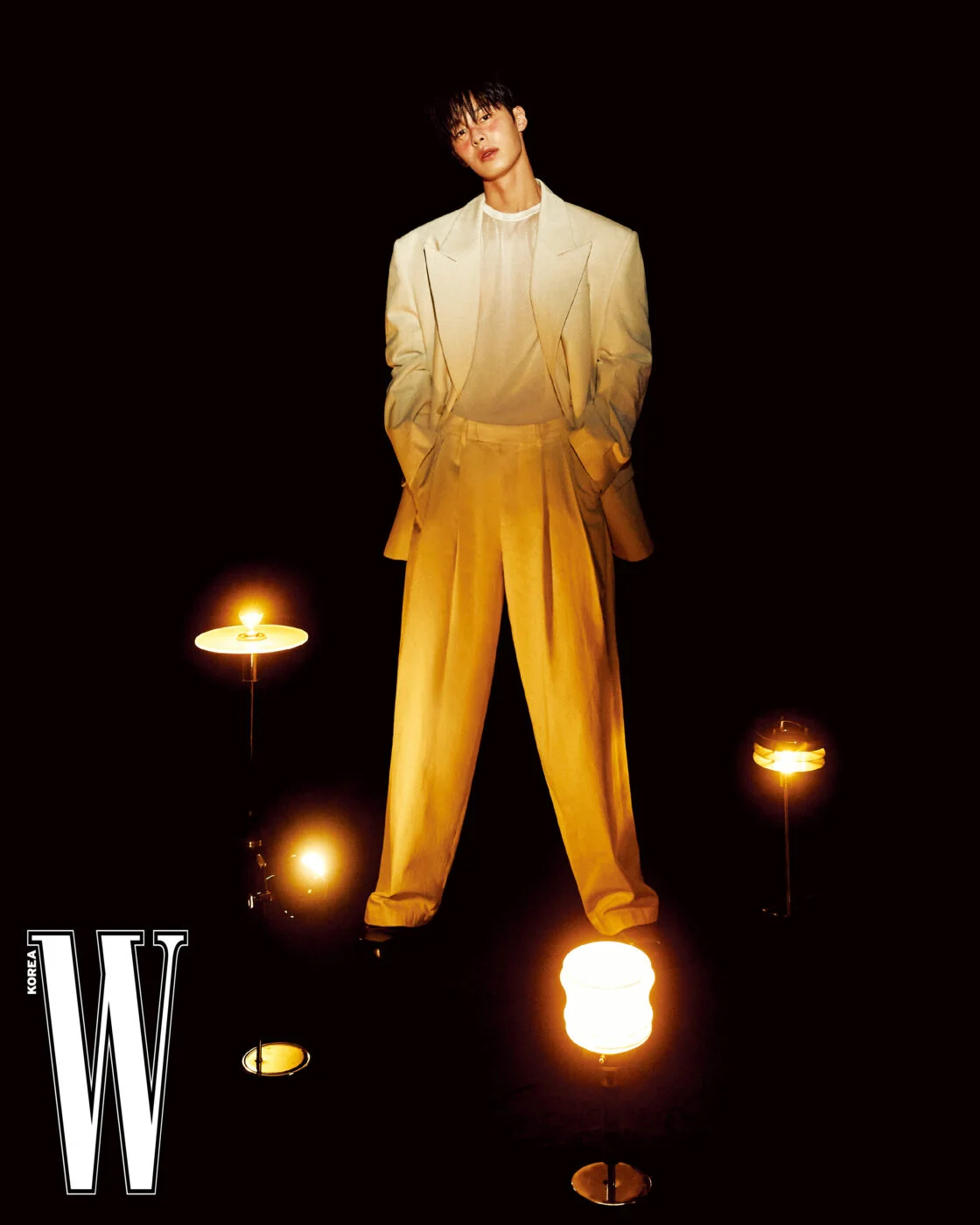 李在旭的完整画报和采访可在《W 韩国》四月号上找到。