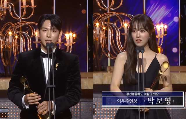 朴宝英在《精神病房也会迎来清晨》中展现精湛演技,除了一样是不敢相信自己会得奖之外,上台时他更是激动落泪表示「演郑多恩非常辛苦,演员同事们每天来到现场给我一个拥抱,我才得以撑下去,我们的戏剧还有很多演员演出,我想要跟那些演员与工作人员说声谢谢」她也不忘向忧郁症患者喊话「如果你现在感到很黑暗、正在度过一个阴暗的晚上,好好地撑下去,就会迎来清晨了!」场面是相当催泪。