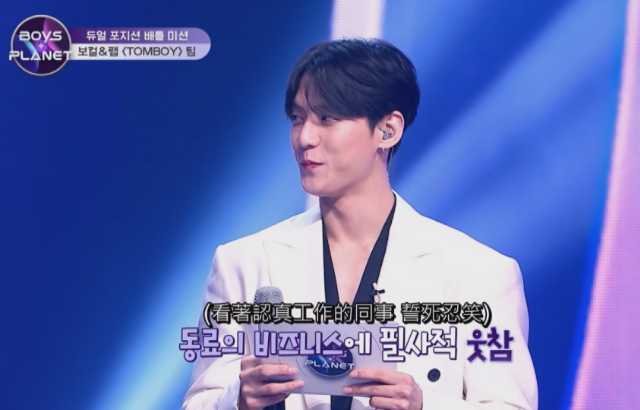舞台登场,四位练习生带来了自我介绍,李会泽装可爱戳着自己的脸颊说道「我是可爱王牌李会泽」,这让一旁的李旼赫似乎是吓呆了努力的忍住笑,后制组更写上「看着认真工作的同事,誓死忍笑」,随后李旼赫干脆不看低头笑了出来,画面可以说是相当逗趣。