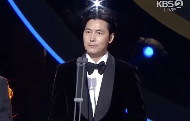 他语带哽咽表示:「真心感谢所有《 12.12 :首尔之春》的观众,因为不希望因为我私人的事情让《 12.12 :首尔之春》有污点,抱持着这样的心情站在这里。很抱歉让支持我的人们失望了,所有的指责我都会承担,也希望这些骂声都只针对我一个人来就好,身为爸爸,我会对儿子负责任到最后。」并在最后鞠躬致意。然而这样在颁奖典礼上谈及私事,有许多人不以为意、认为他只是想洗白,对此举并不买单。