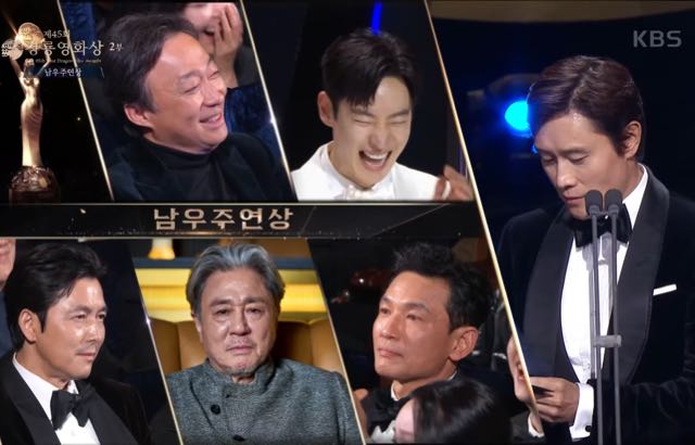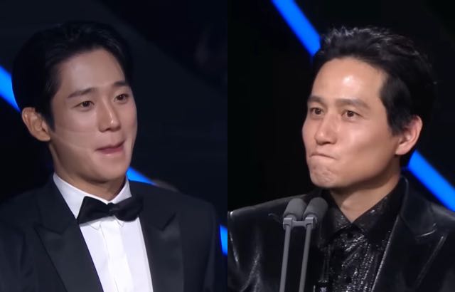 而郑雨盛在典礼全程也是面无表情、一连沈重,他今年以《 12.12 :首尔之春》角逐影帝,颁奖人是上届影帝李炳宪,李炳宪在揭奖时说:「得奖的是⋯李炳宪!的话就好了!」让全场哈哈大笑缓和了紧张的气氛,臭脸整晚的郑雨盛也终于露出淡淡微笑。