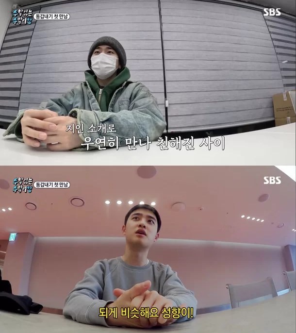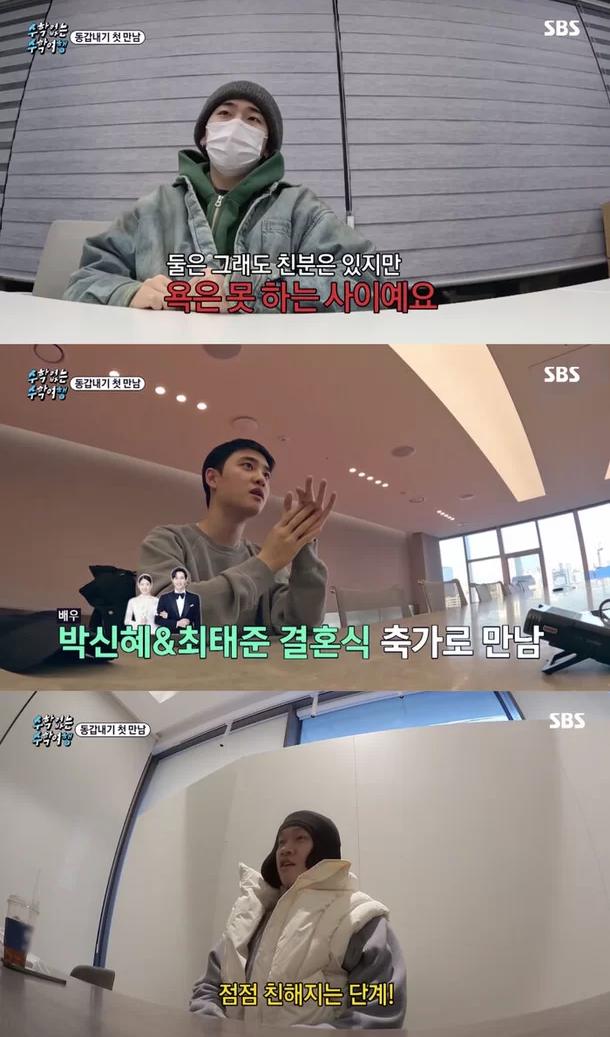 而接下来被制作组问到 D.O. 和 Crush 的关系,ZICO 说:「他们虽然有交情,但还不能在对方面前骂人。交情的深度在于能在对方面前骂人到什么程度。」D.O. 透露:「我们是在朴信惠和崔泰俊婚礼上,准备唱祝歌时见了几次面。」Crush 接续说:「其实没有跟 D.O. 聊很久…正处在逐渐亲近的阶段。」