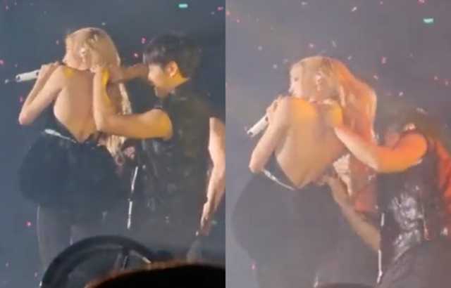 社群Twitter上最近流传一支「Rosé在演唱会上差点发生重大事故」的短片,影片中可见Rosé表演到一半,挂脖套装的上衣带子松开,Rosé赶紧抓紧,冷静继续演唱,而舞者赶紧帮忙绑紧。