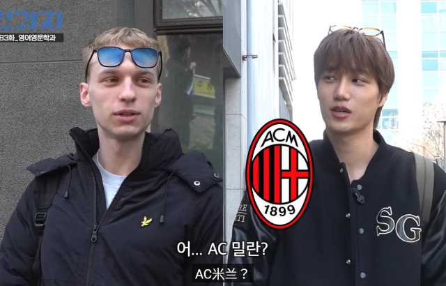 KAI 先是请这位来自义大利的男大生猜自己的年龄,听到对方猜「 24 岁」后还开心地称兄道弟,接着义大利男问他有没有知道的义大利足球队? KAI 答道:「 AC 米兰」,然而对方竟是死对头国际米兰的球迷,义大利男又不死心地追问 KAI 最喜欢的球员? KAI 表示是梅西,义大利男皱眉回应:「我是 C 罗的粉丝」,两人瞬间拉开距离,直唿:「合不来!」