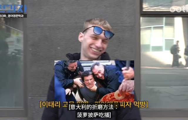 最后义大利男改从食物下手,问 KAI 喜欢的义大利食物为何? KAI 说自己喜欢义大利面和凤梨披萨(夏威夷披萨),一听到凤梨披萨后义大利男就坚决摇头:「 NO !!」,让 KAI 笑到不行。之后该名男子还现身在 YouTube 影片留言区,被其他网友问真的不喜欢凤梨披萨吗?他再度强调:「没有一个义大利人会喜欢!」搞笑的片段也笑翻网友,直言 KAI 真的是会得罪所有义大利人啊!