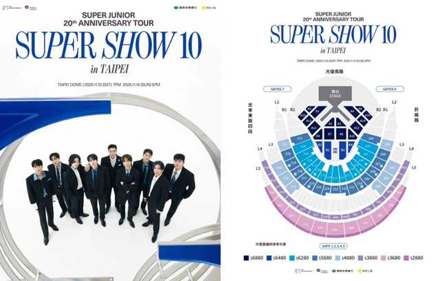 「韩流帝王」Super Junior 在今年迎来出道20週年,他们不只发了新专辑,还将展开巡演 Super Show 10 跟全世界的粉丝一起庆祝,并于22日在首尔盛大开跑!其中,台湾 E.L.F. 最关心的大巨蛋场次,今(20)日也终于官宣消息, Super Junior 将于11月15、16日唱进指标性地点臺北大巨蛋,成为首组在该场地举办专场的韩团,加上因为车祸脚伤好久没有一起活动的希澈,这次也确定会一起跟着巡演,让粉丝都期待爆棚。