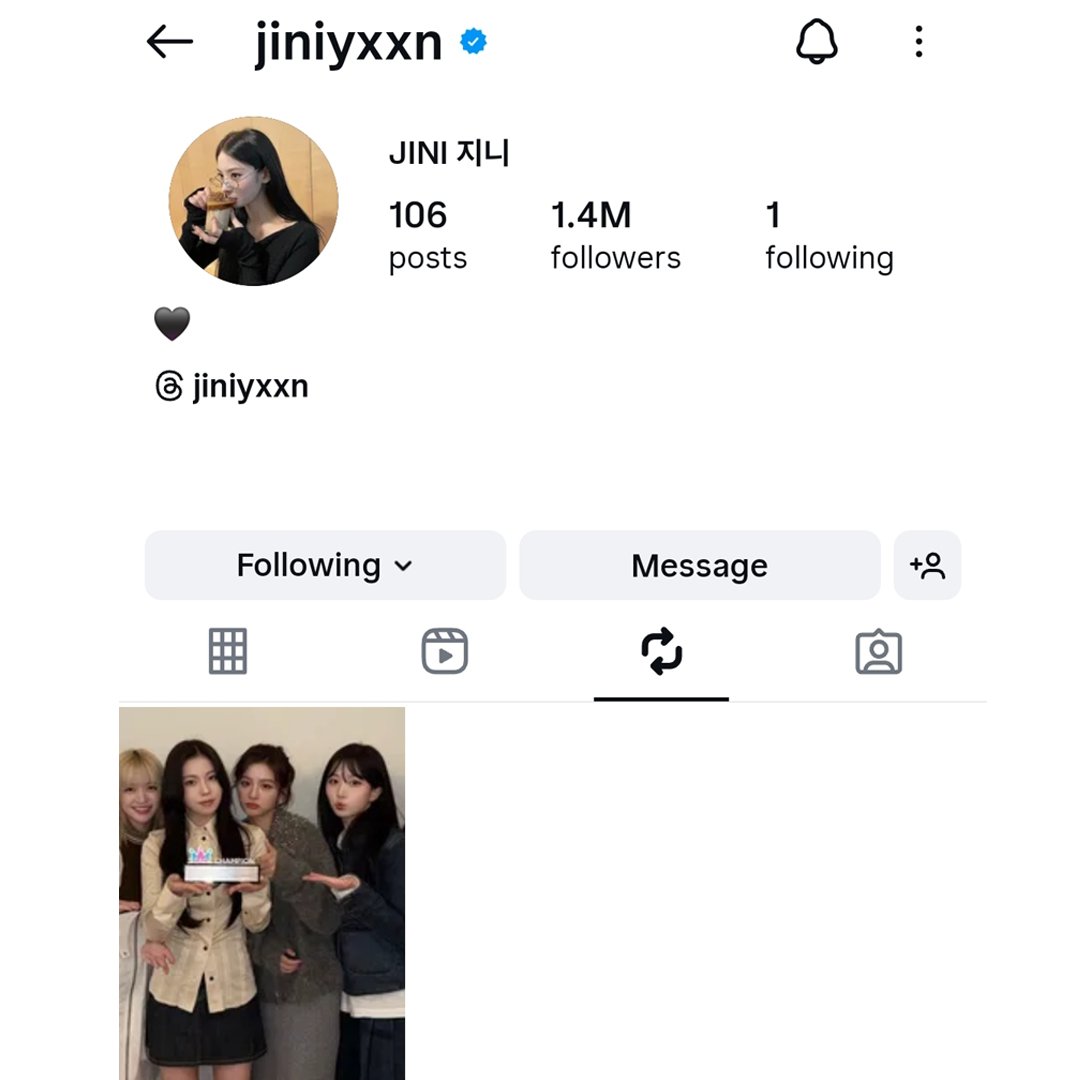 而粉丝发现,该团在社群上发佈的其中一则庆祝夺冠贴文,竟被JINI转发到她的个人帐号。