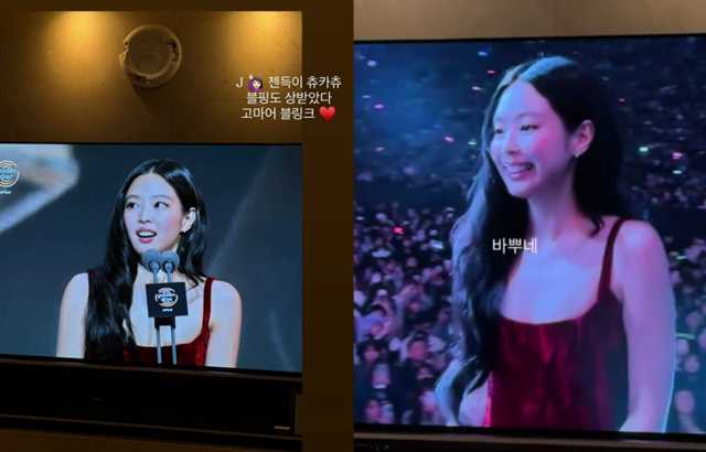 而 Jennie 在台上喊话成员们的事, Jisoo 也看到了,她在 IG 连发两则限动,一则在亏横扫3奖一直上台的 Jennie 「很忙捏」,一则则在恭喜 Jennie 跟 BLACKPINK 都得奖了,并感谢 BLINK,两位的隔空互动,让粉丝觉得暖心又可爱~