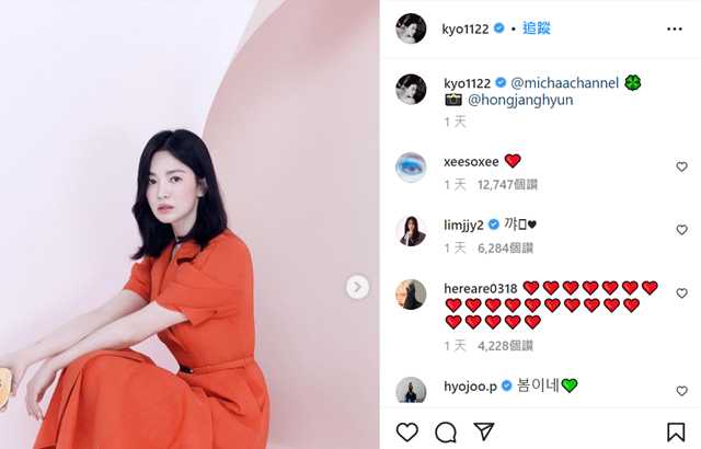 不过韩韶禧的高调告白也让某些人大吃醋了!宋慧乔21日在 IG 晒出一系列美照,除了韩韶禧送上一颗红色爱心之外,《黑暗荣耀》的恶女们林智妍和金赫拉也都来了,其中金赫拉更是一口气发了22个爱心,直接在留言区争宠起来,粉丝看了全都笑翻表示「这什么大型争宠现场」、「这几个女的在比手速快吗?」、「果然大家都爱乔妹呢!」