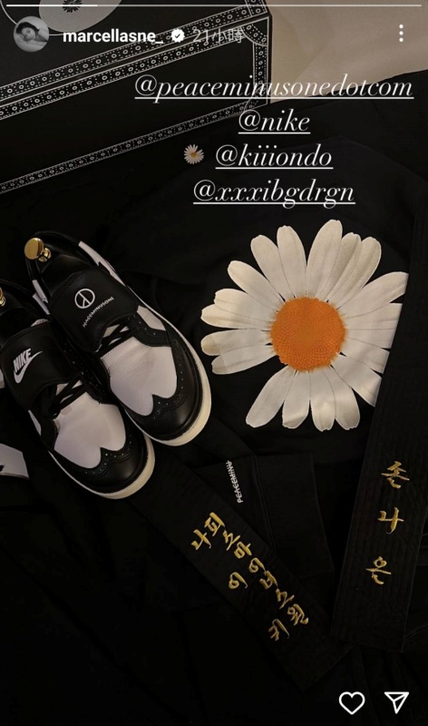 5日,娜恩更新限时动态,上面 PO 出 BIGBANG 成员 GD 送的个人品牌「PEACEMINUSONE」限量球鞋跟衣服,衣服上还有 GD 最喜欢的雏菊花图案,以及特地写上孙娜恩名字的道服绑带,让人好奇两人本来就有这么深厚的交情,还是娜恩转移到 YG Ent. 后才认识的,不过两人都是二代团代表之一,早就认识也不奇怪。