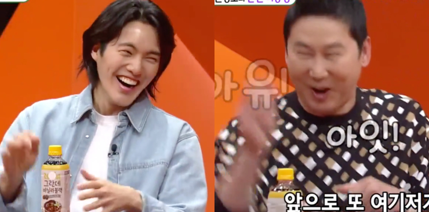 接着主持群讨论到理想型时,金建宇表示:「比较喜欢清纯、不太会生气的类型」,这时徐章勋丢下圈套让他从艺人中挑选,金建宇有些不安的回答道:「艺人吗…说也可以吧…金多美」。老实交代的样子让徐章勋笑道:「虽然问了,但想说不会真的回答吧,竟然回答了」乖巧单纯的样子让主持群们笑翻!