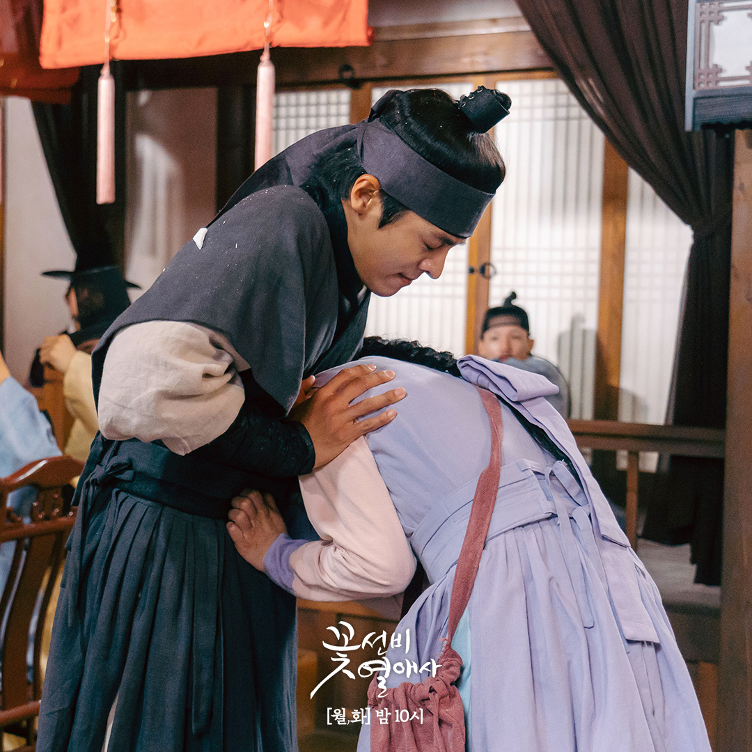 在该剧即将播出的剧集中发布的最新剧照中,强三为了拯救尹丹吴再次将自己置于危险之中。当 Yoon Dan Oh 在 Buyeonggak 工作时,一位不守规矩的顾客突然抓住她的手,让她措手不及。