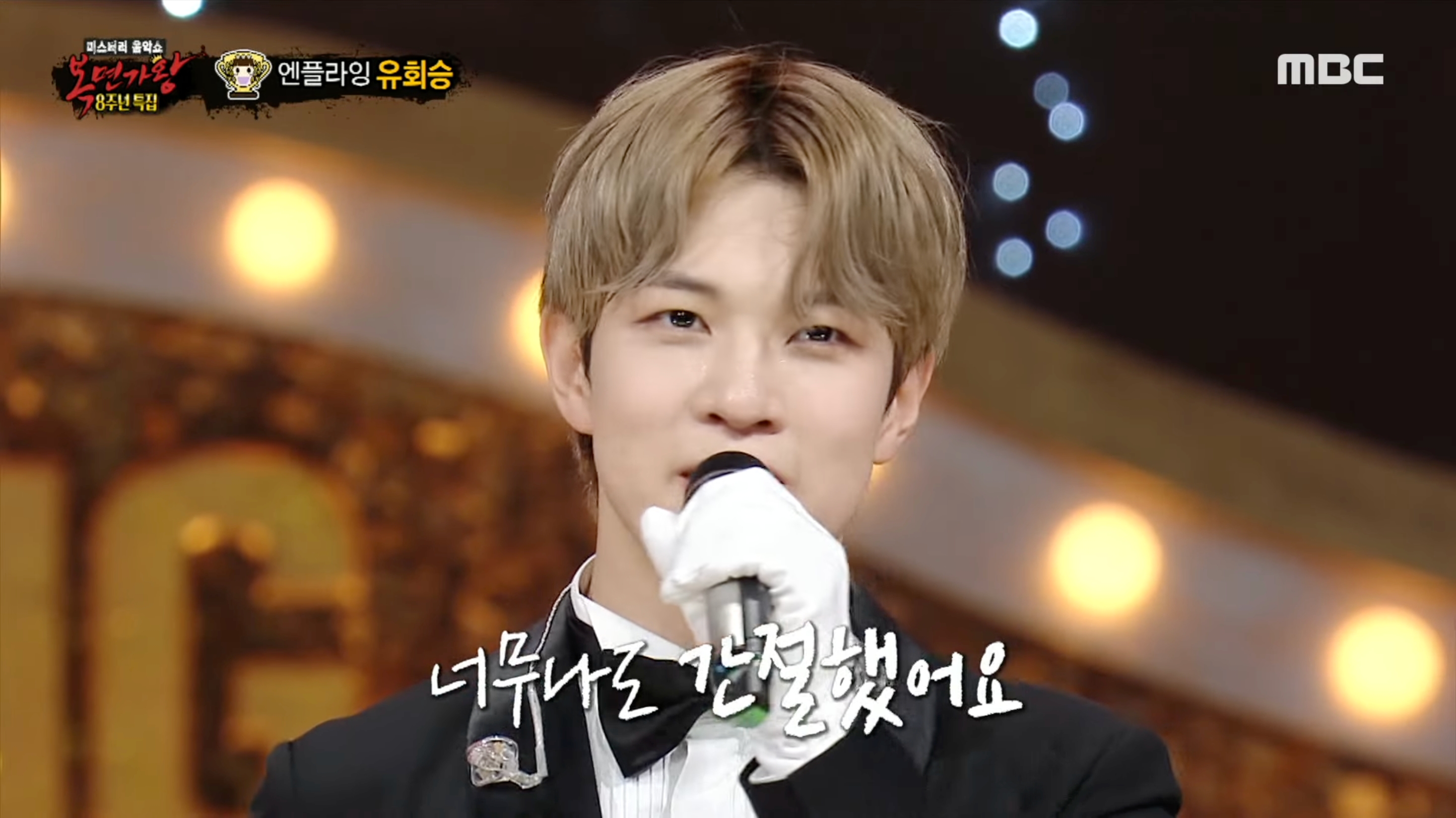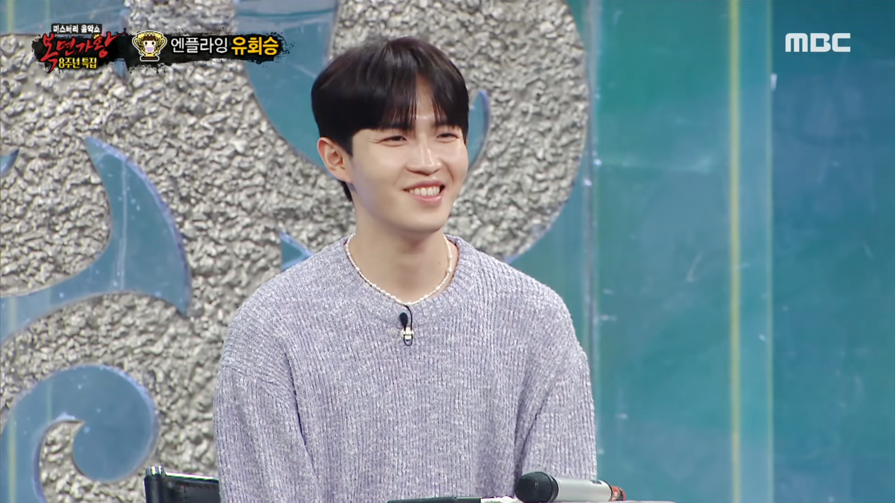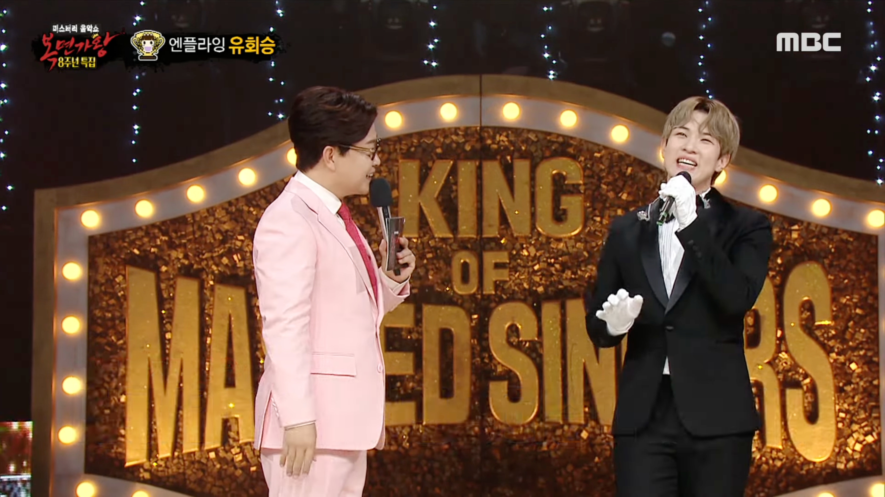 主持人 Kim Sung Joo 将 Yoo Hwe Seung 描述为第八位在节目中加冕冠军的偶像,他分享说,在他第一次获胜后,这位歌手在后台哭了起来。