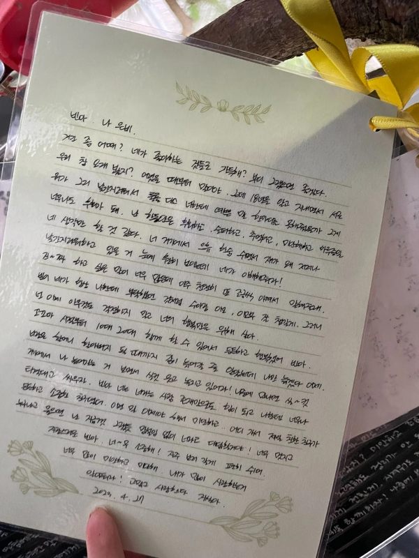 ASTRO 文彬在19日于家中离世,消息一出,震惊外界,让南韩演艺圈及粉丝们都陷入深深的悲痛中,22日文彬出殡仪式因为行程无法到场的17年挚友 VIVIZ 信飞,事后被拍到在舞台上忍住悲痛的模样,让粉丝都非常心痛,近日有网友在文彬追悼场所发现信飞留下的手写信,信中内容再度让粉丝泪崩。