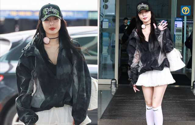 泫雅在29号为了香港的演出前往机场,被拍到终于把极短马桶盖头接回黑色长髮,穿着墨绿晕染外套搭配白色小短裙,整个人纯欲感拉满,颜值就像是又重新回春一样!