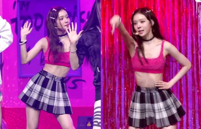 aespa 11日登上音乐节目《M Countdown》打歌,在舞台上热力带来新歌《Spicy》的演出~只见Winter一改过去短髮造型,改以长髮亮相,穿着桃红色露腰小可爱配上格纹百褶裙,有点俏皮可爱~