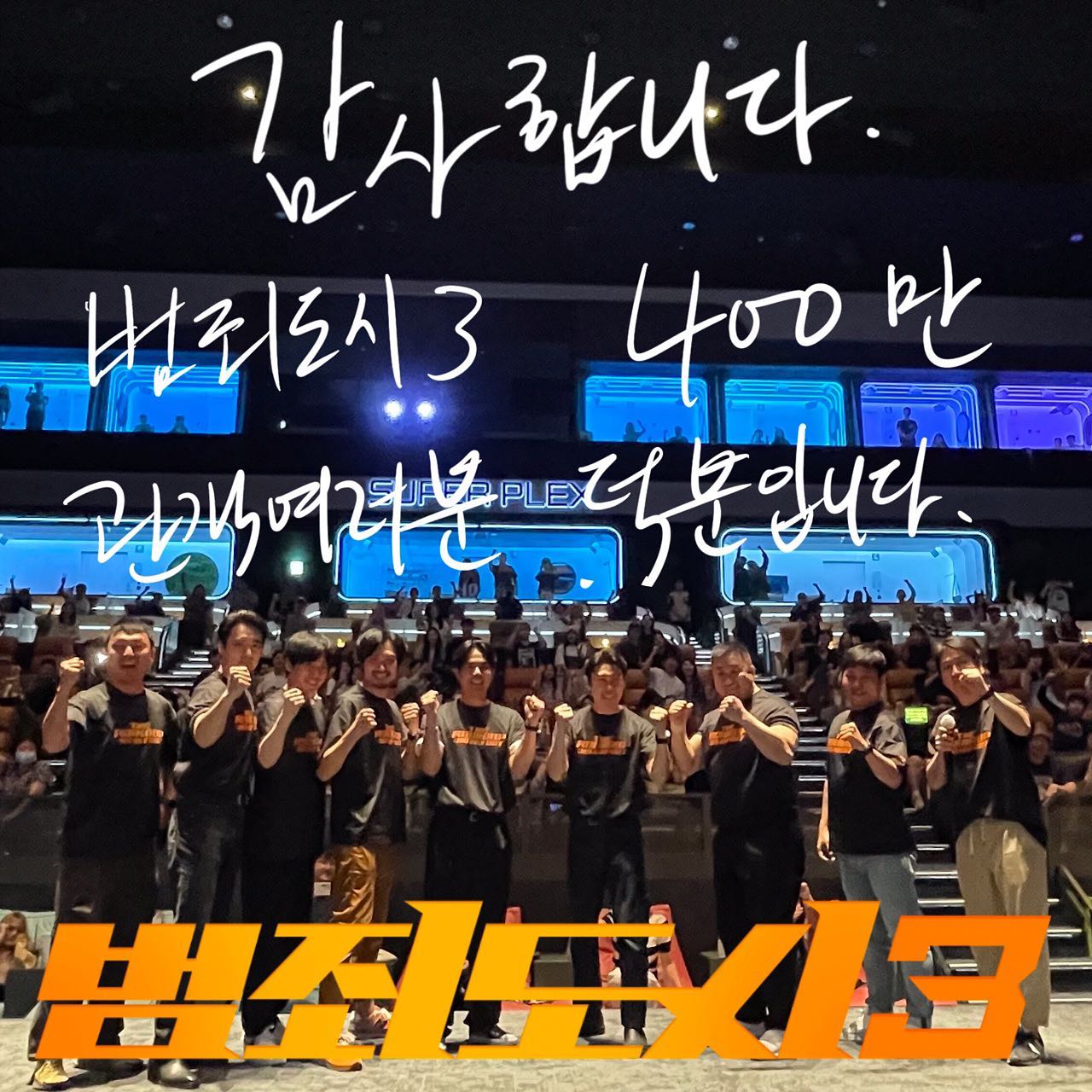 明星马东锡亲自代表演职人员向观众表示感谢:“谢谢。这都要感谢去看《神枪手 3》的 400 万影迷。”