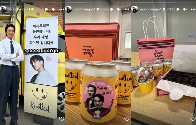 演员金敏俊近日出演电视剧《杜理安小姐》,身为小舅子的 GD 立刻现身为姊夫应援,展现家族爱,6日金敏俊于个人 IG 限时动态标记 GD 帐号,后面竟是大大的 GD 照片,还有多颗爱心,写着「为杜理安小姐应援!我们姊夫加油!!!」,原来 GD 送应援咖啡车到金敏俊拍摄场地,金敏俊还秀出精緻可爱的饮料与甜品,而看到照片的权达美也马上转发老公与应援车的自拍,写下「我爱你们两个」。