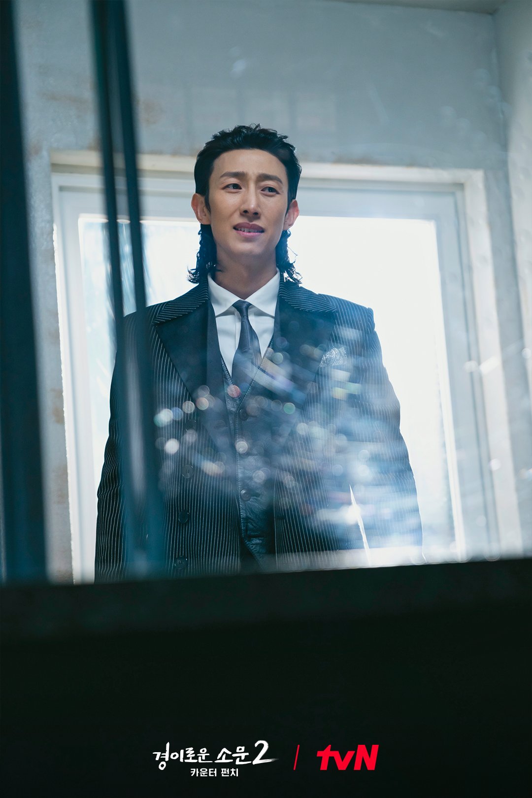 在最新发布的剧照中,姜基英变身为顶级掠食者必光,拥有吸收计数器能力的超自然力量。他向后梳的头发和合身的条纹西装预示着这位演员将转变为一个前所未有的邪恶角色,这与他之前在《奇葩律师吴》中饰演的郑明锡形成鲜明对比。