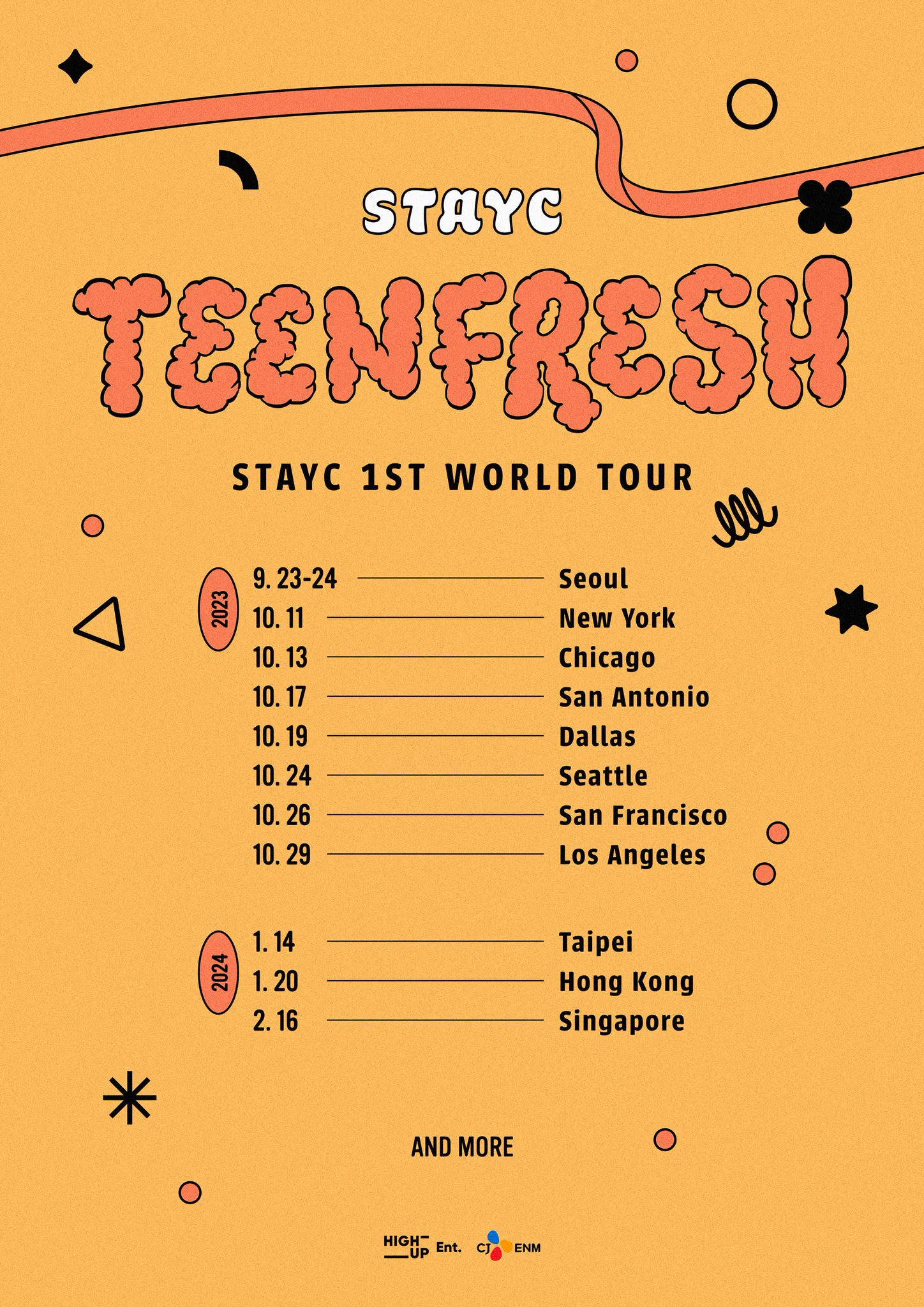 继 9 月 23 日至 24 日在首尔举行两晚音乐会后,STAYC 将前往美国,他们的巡演将前往全国七个不同的城市。 STAYC将于10月11日在纽约、10月13日在芝加哥、10月17日在圣安东尼奥、10月19日在达拉斯、10月24日在西雅图、10月26日在旧金山、10月29日在洛杉矶演出。