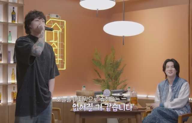 Jungkook唱完后SUGA筋疲力尽的说「走吧」、「辛苦了」,但意犹未尽的忙内并没有要结束甚至又开始吃起饭来,让SUGA放弃的直接去换下班服装,Jungkook便又在唱起歌来,SUGA换完衣服后看到这场面直喊「去KTV吧」傻眼完后直接丢下弟弟下班了,Jungkook最后甚至向工作人员道歉「我想多玩一下,对不起」该场面也让韩网笑疯直唿「真的是歷代级的嘉宾」。