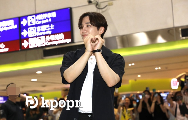 俊昊的高人气,让上百名粉丝直接塞满整个机场,就连2楼都是满满粉丝,贴心的他还特地走到大厅与不惧风雨前来接机的粉丝们打招唿,站在工作人员指定了拍照区域后,俊昊先是开心向各个方向的粉丝挥手,还礼貌的鞠躬,接着比出各种爱心,让现场粉丝尖叫不断。
