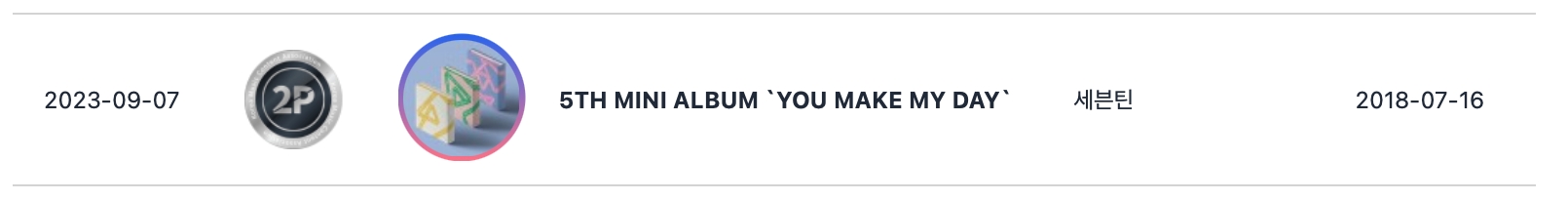 SEVENTEEN 的 2018 年迷你专辑《YOU MAKE MY DAY》获得双白金认证,自 2018 年 7 月发行以来,该专辑现已售出超过 50 万张。