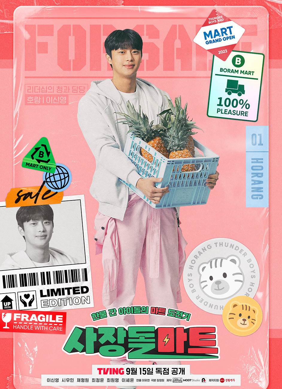 新发布的海报展示了雷霆男孩的个人成员以及他们在超市负责的部分。首先,Thunder Boys 队长 Choi Ho Rang 负责水果和蔬菜部分。虽然性格傲慢(外表冷酷,内心热诚),但崔浩朗比任何人都更关心自己的成员,并带头经营业务,就像他以耿直的性格带领雷霆小子一样。 p>