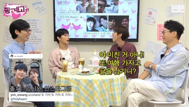 光熙对时完的执着相信许多粉丝都知道,所以当池锡辰与刘在锡讲到一起去旅行就是好友时,让光熙超激动想到时完日前与丁海寅拍的旅行综艺《演员旅行中》「他前一阵子跟丁海寅一起去了…呀,真的是疯了吧?竟然还留言说再一起去旅行吧?真的超无言,跟丁海寅一起去了,他不是会跟谁说一起去旅行的人,我们认识几年了?」超难过的抱怨,直接让大家笑翻,但这段发言似乎让光熙觉得很过意不去。